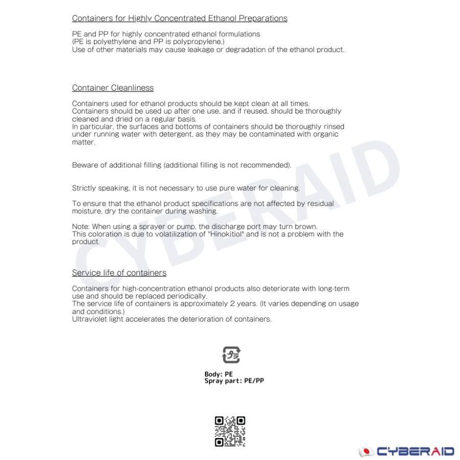 「食品添加物 エタノール製剤」なので、「人と環境にも優しく安心して」毎日の衛生管理にお使いいただけます。